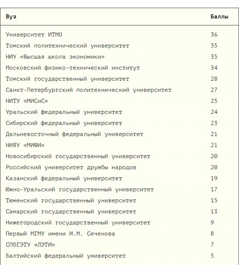 «Работа с анкетами показала, что подавляющее большинство вузов Проекта 5-100 по-прежнему уделяет не слишком большое внимание позиционированию своих научных достижений в СМИ: даже при том, что максимальное количество баллов можно было получить всего за шесть опубликованных за полгода научных релизов, «шестерку» здесь получили лишь 13 университетов», – прокомментировали создатели рейтинга.