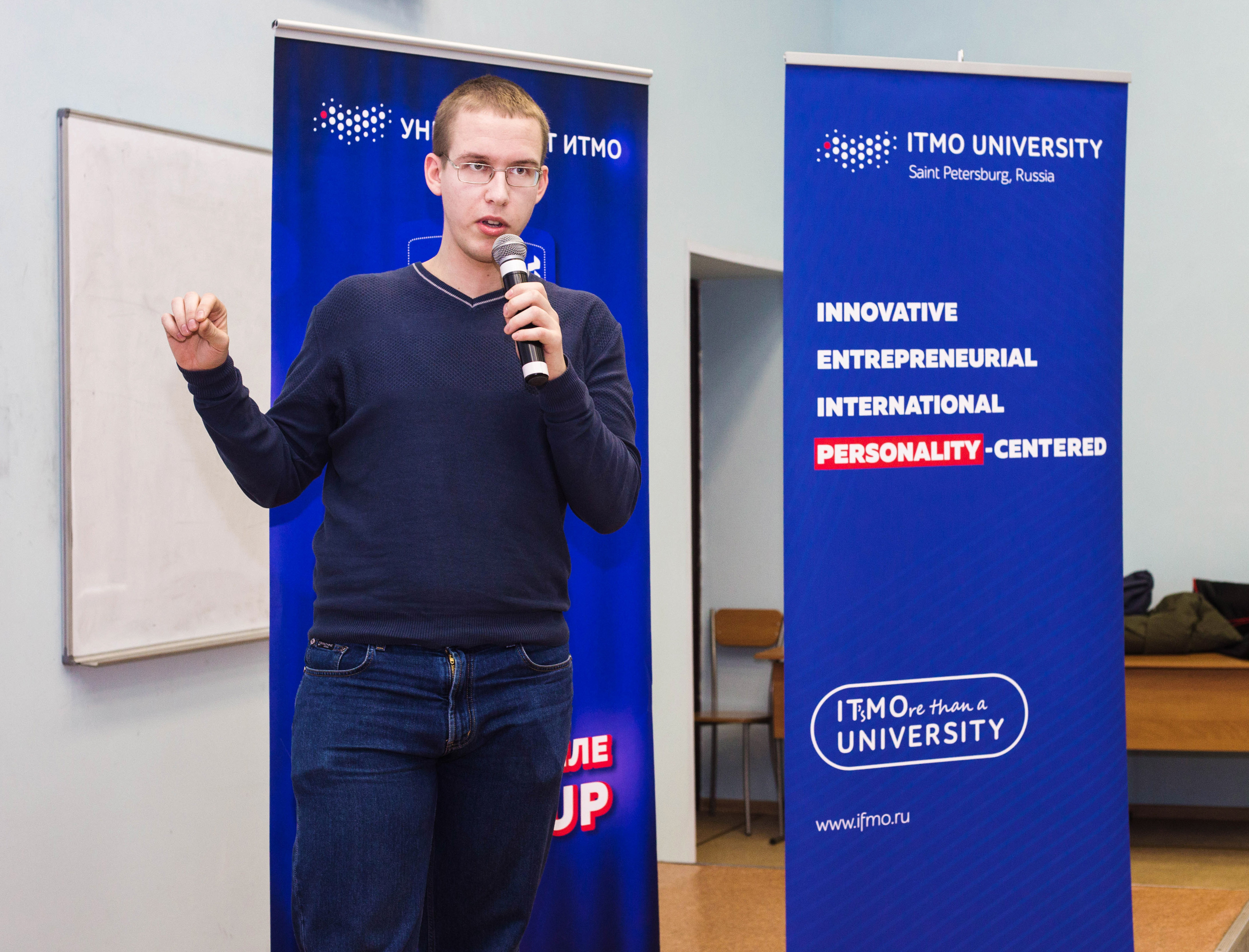 От своих «старших братьев», городских слэмов, Science Slam ITMO University не отличается практически ничем. Молодые ученые десять минут рассказывают о своих исследованиях зрителям, которым достается роль судей: призовые боксерские перчатки получает тот, кому аудитория аплодировала громче всего. Однако битва перед публикой пройдет только 14 апреля в рамках Всероссийского конгресса молодых ученых, а пока что в вузе прошло лишь первое очное прослушивание потенциальных участников. Отбор «первых ласточек» вели организатор Михаил Тупикин, специалист Университета ИТМО по интернет-коммуникациям Наталия Рось и профессор кафедры физики естественнонаучного факультета с богатым опытом научно-популярных выступлений Александр Чирцов.