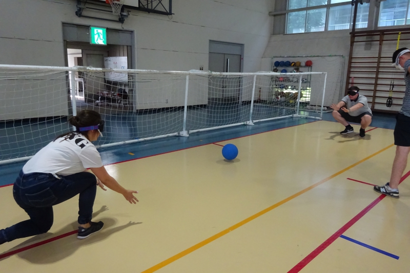 Андрей Зленко: Самое интересное – голбол. Это спортивная игра (официальная дисциплина Паралимпийских игр), в которой команда из трёх человек должна забросить мяч со встроенным колокольчиком в ворота соперника. Голбол был создан после Второй мировой войны с целью помочь реабилитации ветеранов войны – инвалидов по зрению. К слову, Россия до недавнего времени была чемпионом мира в этом виде спорта, затем первенство одержала сборная Японии. В этой игре также нужно ориентироваться на слух. Поле размечено полосками, на ощупь можно определить, в какой части поля ты находишься, а, чтобы передать пас игроку, нужно назвать его имя вслух. Игру в голбол можно использовать для тимбилдинга, так как во время игры на высоком уровне необходимо ощущать партнера. Важны сыгранность и договоренность – именно это помогло нам с Наташей забить гол команде-противнику и победить.
